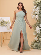#MRA22312156P A-Line/Princess One-Shoulder Plus Size Bridesmaid Dresses with Ruffles & Split Side & Ruches