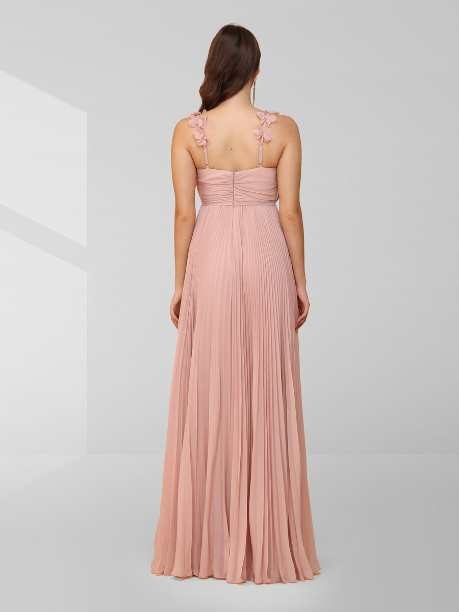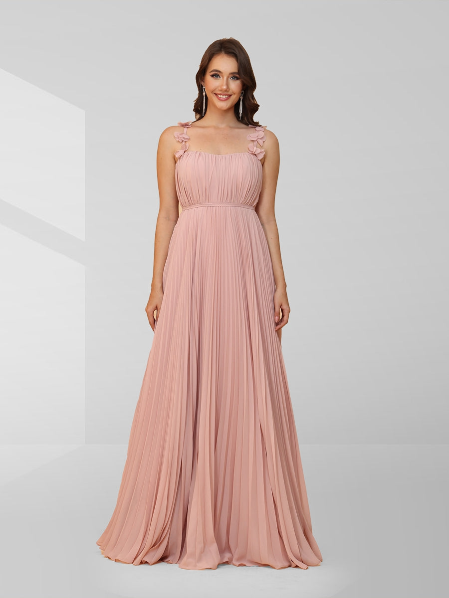 #MRA22472154 A-Line/Princess Spaghetti Straps Ruched Evening Dresses with Pleats & Flowers
