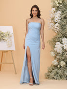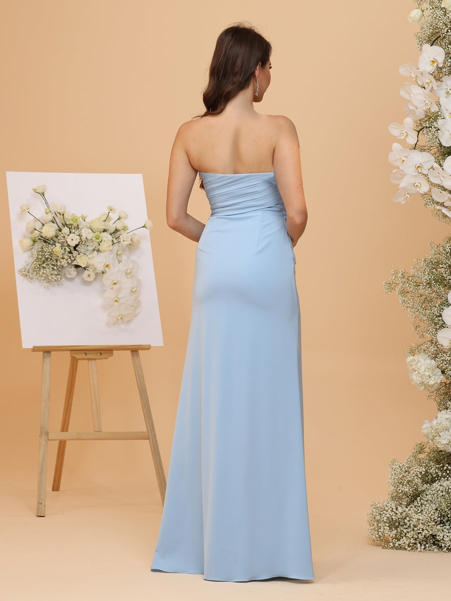 #BMRA22312144 Sheath/Column Strapless Sleeveless Long Ruched Bridesmaid Dresses with Slit Side