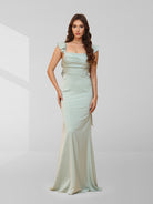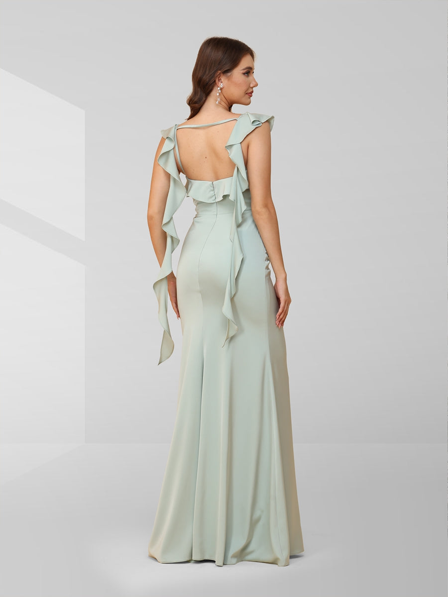 #MRA22312147 Trumpet/Mermaid Square Floor-Length Evening Dresses with Ruffles & Watteau Train