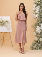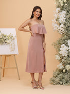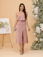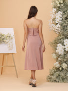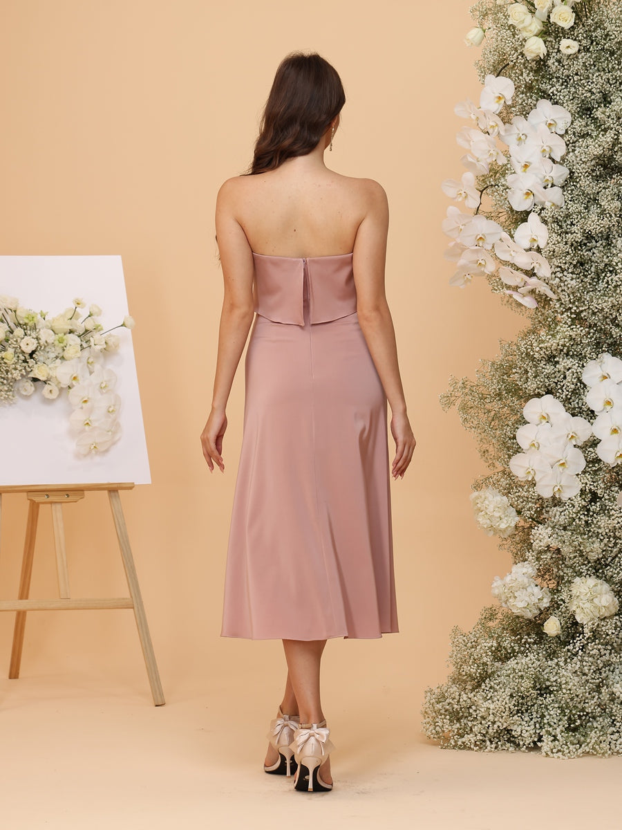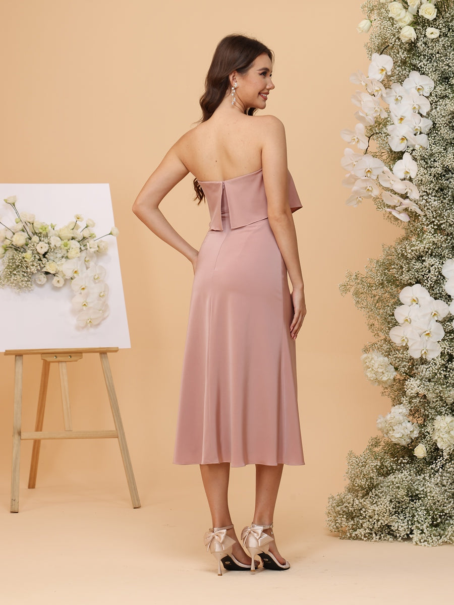 #MRA22312151 A-Line/Princess Strapless Tea-Length Bridesmaid Dresses with Ruffles & Front Split