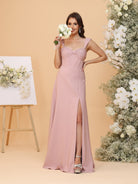 #MRA22312160 A-Line/Princess Sweetheart Floor-Length Bridesmaid Dresses with Corset & Split Side