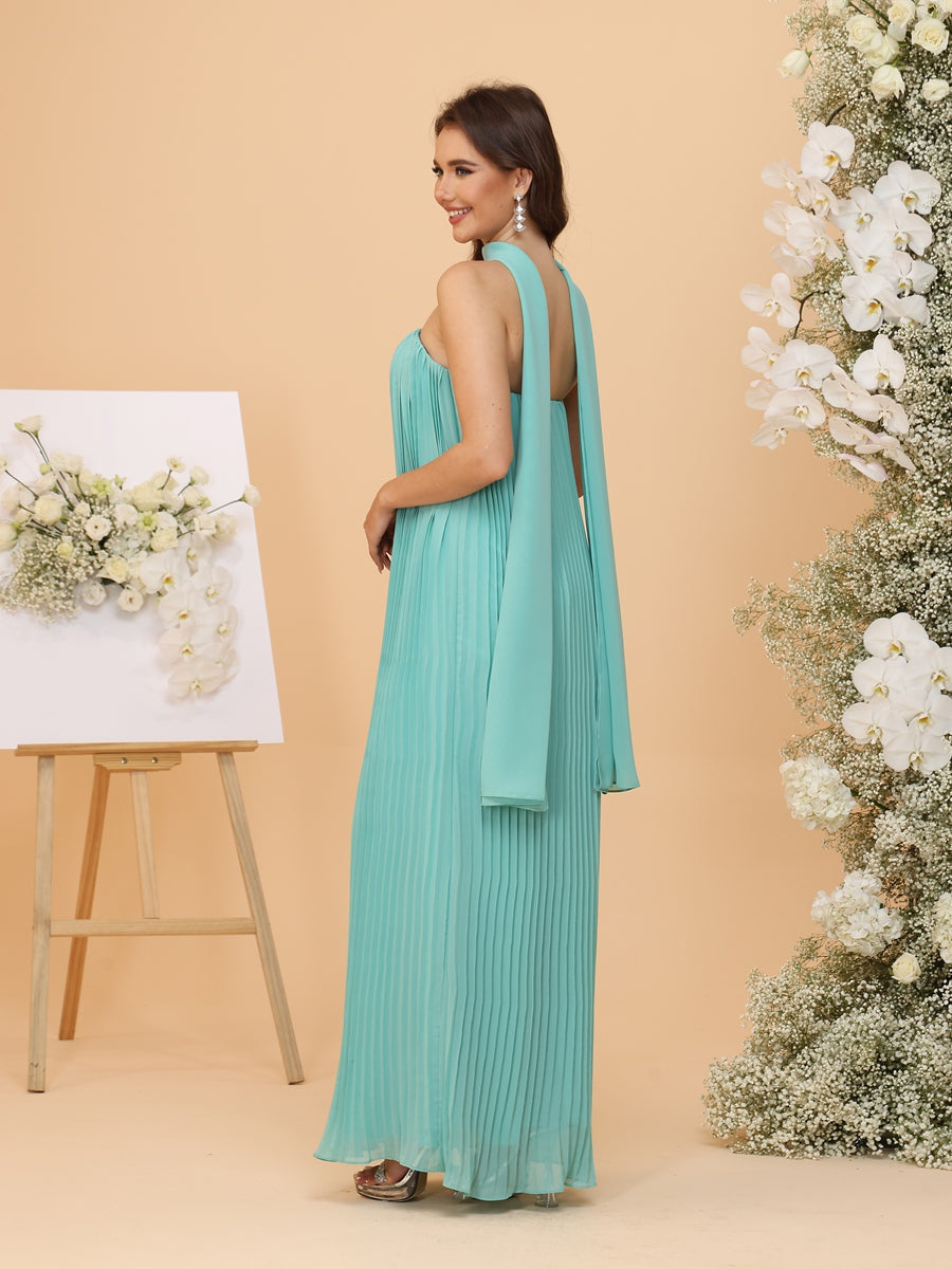 #MRA22312161 Chiffon Strapless Floor-Length Bridesmaid Dresses with Pleats & Watteau Train