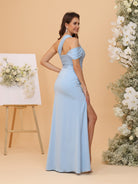 #MRA22312144 Sheath/Column One-Shoulder Long Ruched Bridesmaid Dresses with Split Side