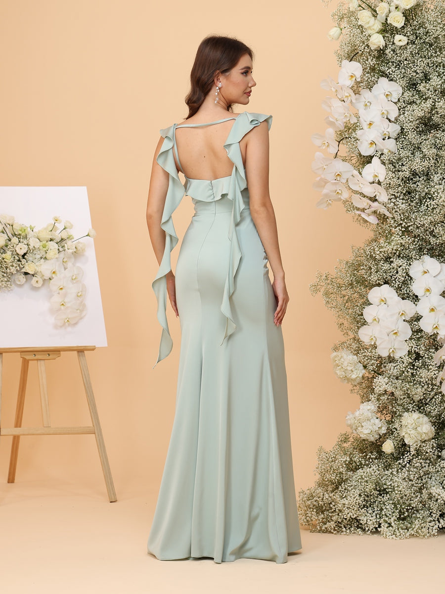 #MRA22312147 Trumpet/Mermaid Square Floor-Length Bridesmaid Dresses with Ruffles & Watteau Train