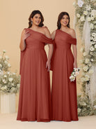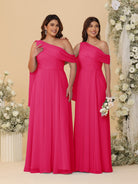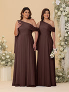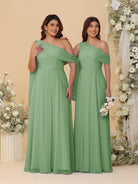 #MRA99122120P A-Line/Princess One-Shoulder Floor-Length Plus Size Bridesmaid Dresses With Watteau Train