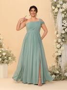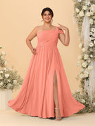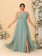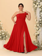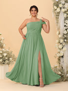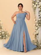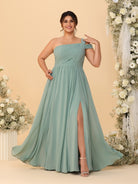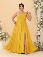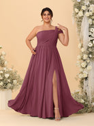 #MRA99122117P A-Line/Princess One-Shoulder Sleeveless Floor-Length Ruched Plus Size Bridesmaid Dresses With Side Slit