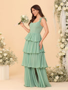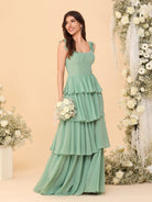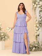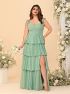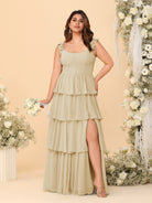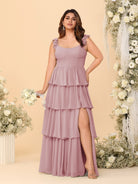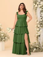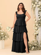 #MRA99122067 A-Line/Princess Scoop Sleeveless Floor-Length Bridesmaid Dresses With Ruffles & Side Slit