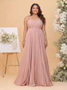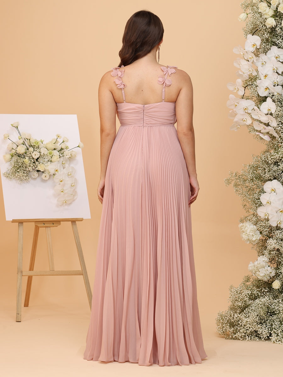 #MRA22312154P A-Line/Princess Spaghetti Straps Ruched Plus Size Bridesmaid Dresses with Pleats & Flowers