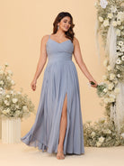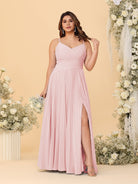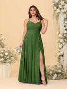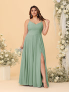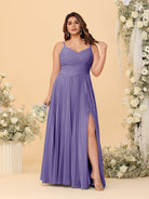 #MRA99122126P A-Line/Princess Spaghetti Straps Sleeveless Ruched Bridesmaid Dresses with Side Slit