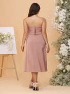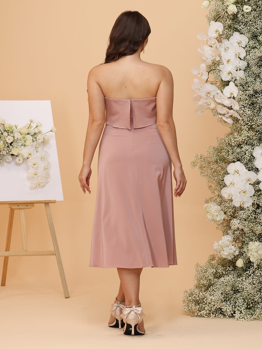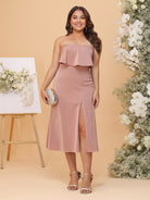 #MRA22312151P A-Line/Princess Strapless Tea-Length Plus Size Bridesmaid Dresses with Ruffles & Front Split