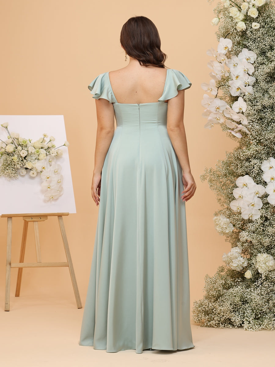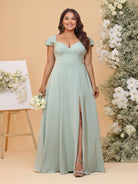 #MRA22312150P A-Line/Princess V-Neck Ruffled Floor Length Plus Size Bridesmaid Dresses with Split Side
