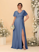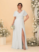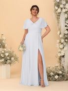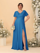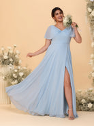 #MRA99122119P A-Line/Princess V-Neck Short Sleeves Plus Size Bridesmaid Dresses With Side Slit