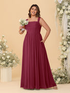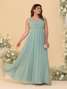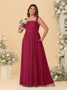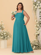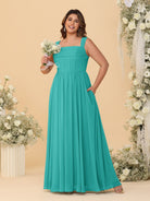 #MRA99122122P Chiffon A-Line/Princess Square Neck Sleeveless Plus Size Bridesmaid Dresses with Pleats