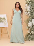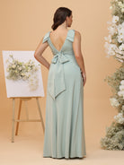 #MRA22312152P Sheath/Column Sleeveless V-Neck Long Plus Size Bridesmaid Dresses with Bowknot