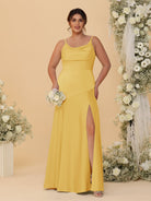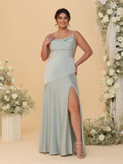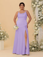 #MRA99122112P Sheath/Column Spaghetti Straps Cowl Neck Sleeveless Plus Size Bridesmaid Dresses With Split Side