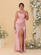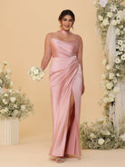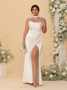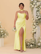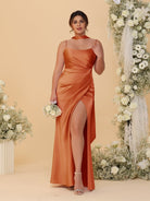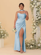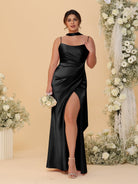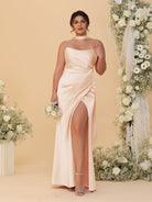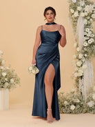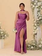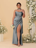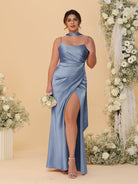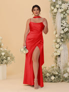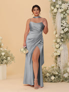 #MRA99122109P Sheath/Column Spaghetti Straps Sleeveless Floor-Length Ruched Bridesmaid Dresses With Neck Scarf & Split Side