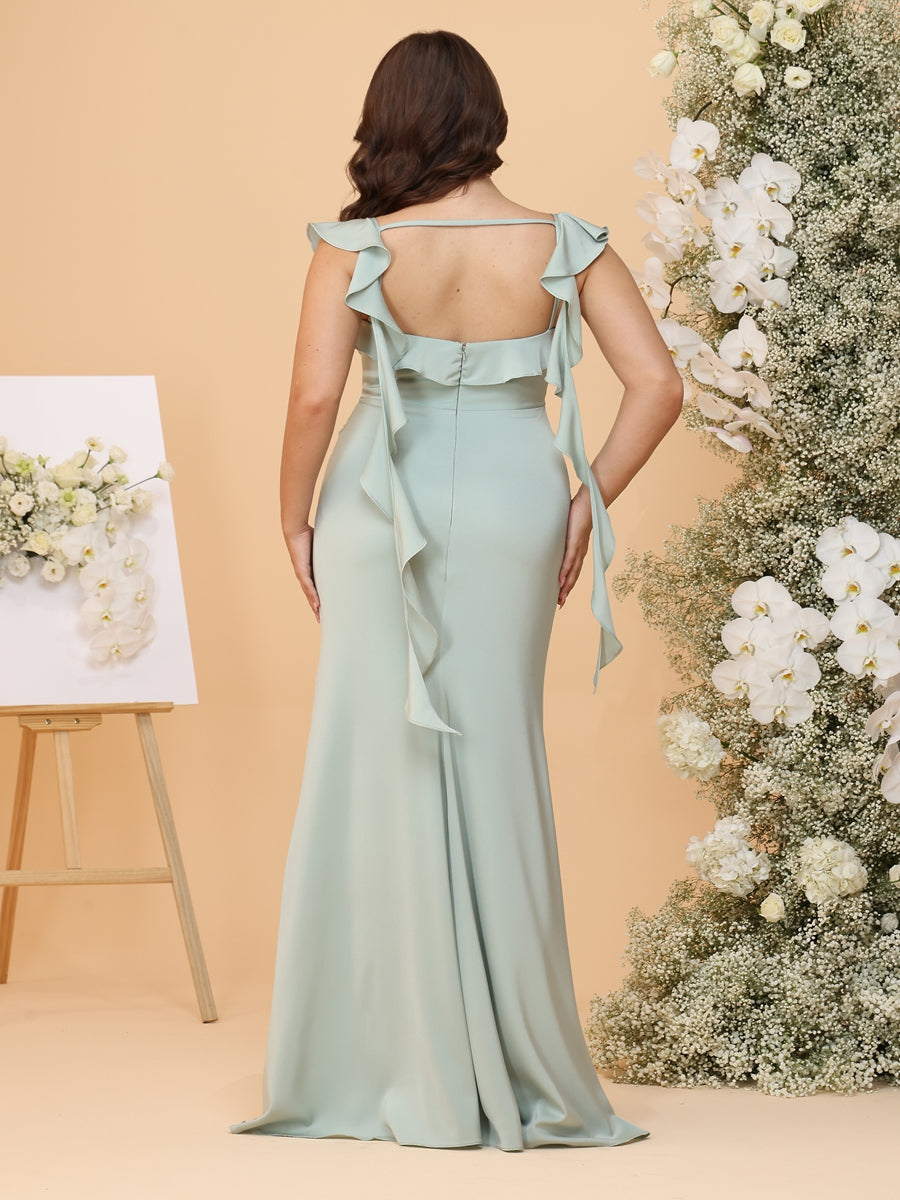 #MRA22312147P Trumpet/Mermaid Square Floor-Length Plus Size Bridesmaid Dresses with Ruffles & Watteau Train