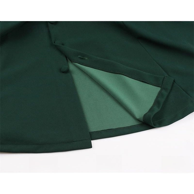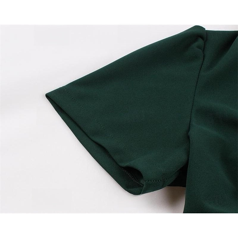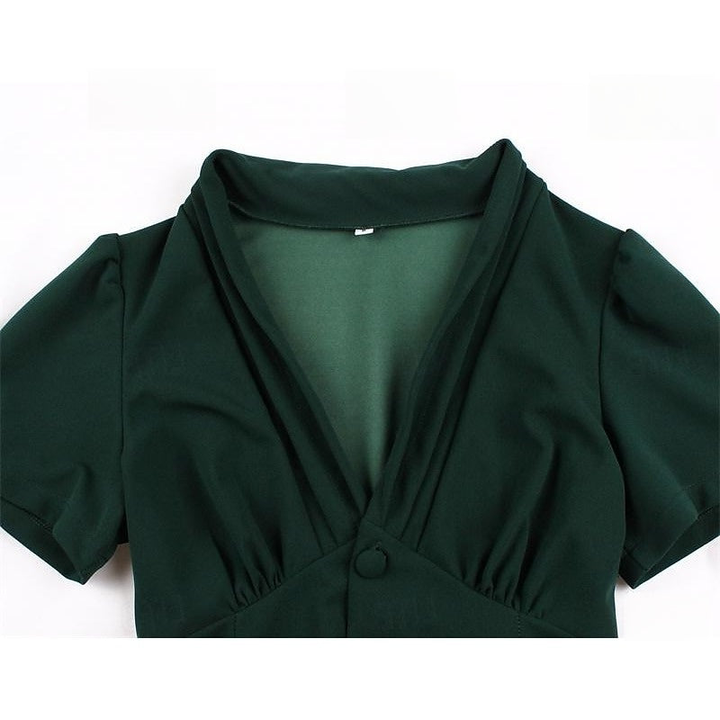 #MRA342650W A-Line/Princess 1950s V-Neck Short Sleeves Ruched Vintage Dresses with Pleats & Bow & Buttons