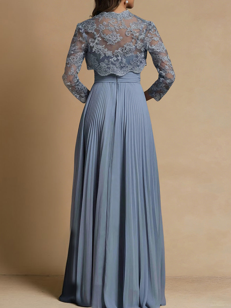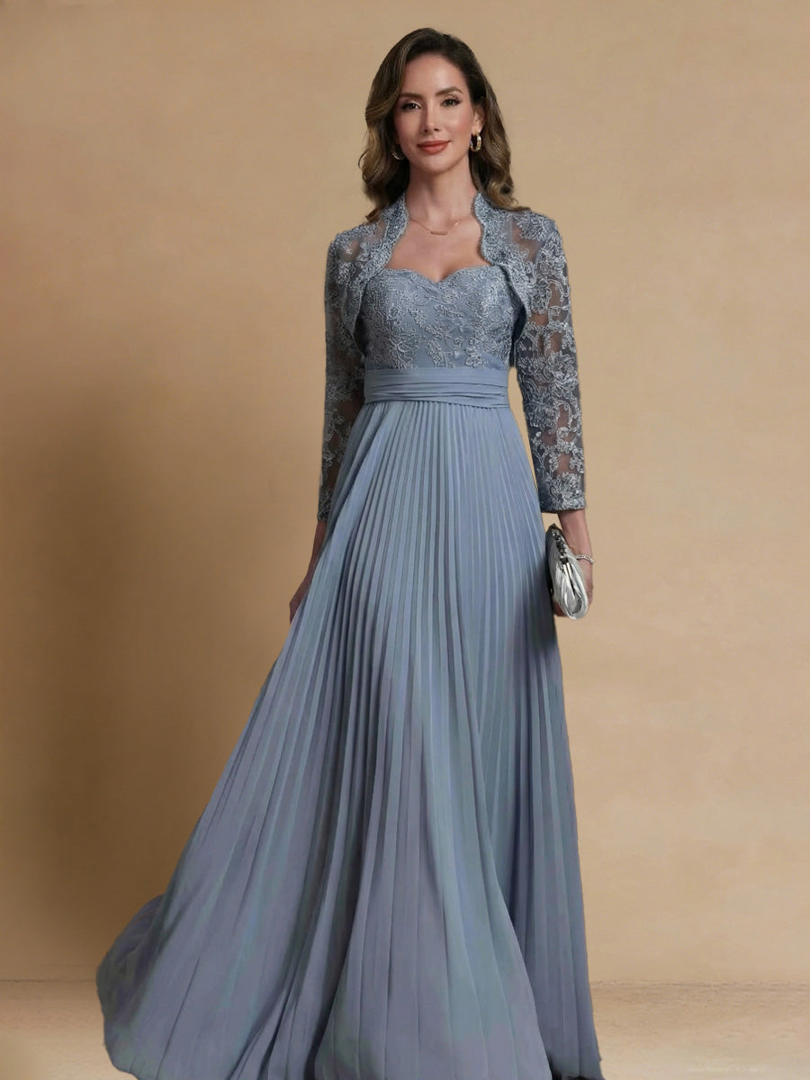 #MRA450512 A-Line/Princess 2 Pieces Mother of the Bride Dresses Formal Dresses Spaghetti Straps Long Sleeves Floor-Length Chiffon Dresses With Jacket/Pleats