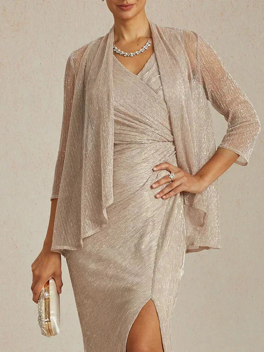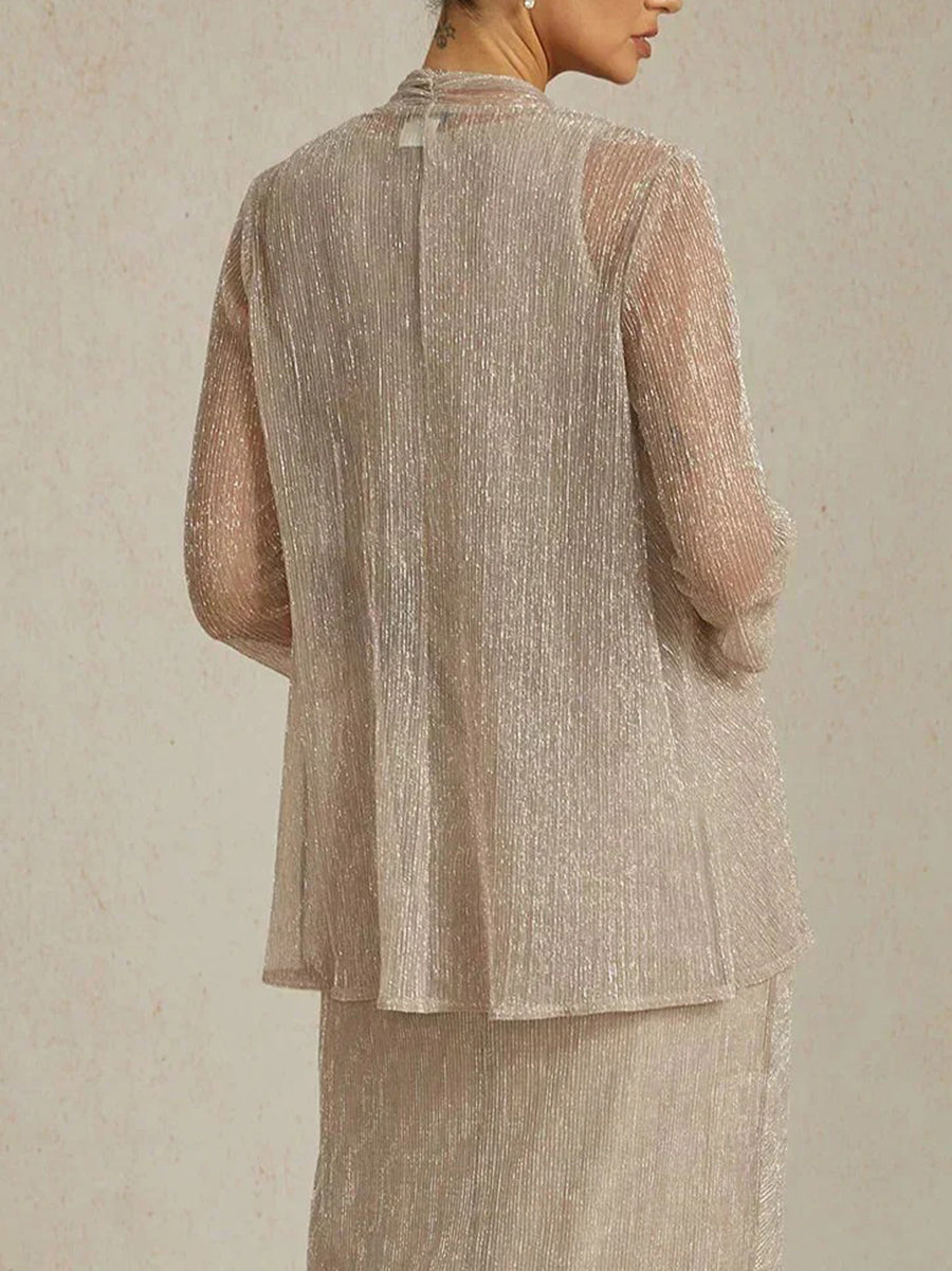 #MRA353912 A-Line/Princess 2 Pieces Mother of the Bride Dresses Glitter Chiffon Wedding Guest Dresses Scoop Neck 3/4 Sleeves Ankle-Length Formal Dresses With Jacket/Wrap