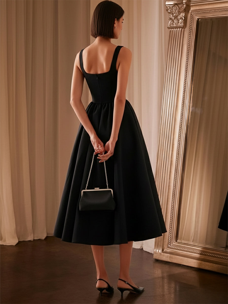 #MRA362001 A-Line/Princess Evening Dresses Cocktail Dresses Square Neck Sleeveless Tea-Length Satin Formal Dresses With Back Zipper/Pleats